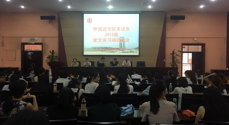 6月19日下午,英语系在leyu·乐鱼(中国)体育官方网站报告厅召开2015级毕业实习、毕业论文动员大会,副院长刘辅兰、系主任胡新建、教研室主任晏小琴、钟彩顺及2015级全体英语专业学生参加了本次大会。
