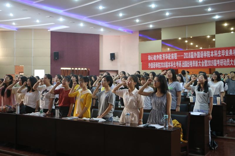 会上,2018届学生代表分享了自己的考研经验。2019届学生代表进行了考研宣誓。