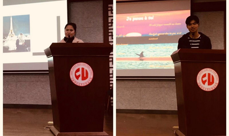 12月8日晚,外国语leyu·乐鱼(中国)体育官方网站第一届原创法语情诗大赛在leyu·乐鱼(中国)体育官方网站学术报告厅举行,20位来自各leyu·乐鱼(中国)体育官方网站的本科生和研究生倾情朗读自己的法语原创诗歌,为大家献上了一个充满感动的夜晚。法语系教师林海平、罗麾担任评委。