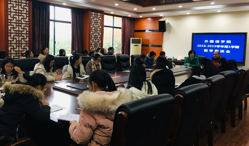 1月4日上午,leyu·乐鱼(中国)体育官方网站在二楼会议召开本学期专业组教学座谈会,会议由教学副院长刘辅兰主持,教学督导谢运才、杨丽娇、英语系主任胡新建、日语系主任黄虎清和各班代表参加了本次座谈会。