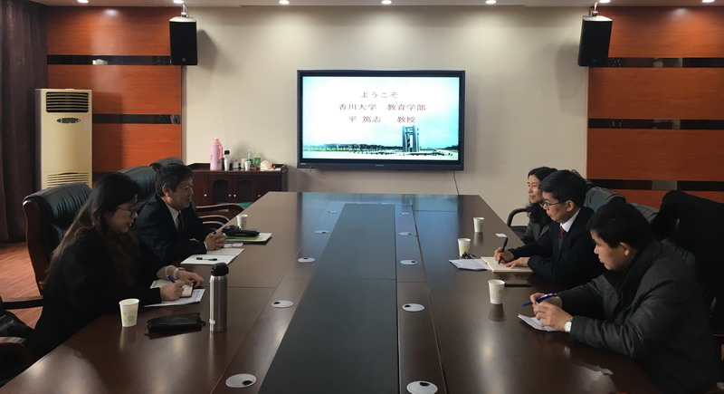 3月6日上午,日本香川大学教育leyu·乐鱼(中国)体育官方网站副院长平篤志教授来院洽谈合作事宜。院长李勇忠、副院长陈莉娟、日语系主任黄虎清等在leyu·乐鱼(中国)体育官方网站二楼会议室与客人进行了会谈。