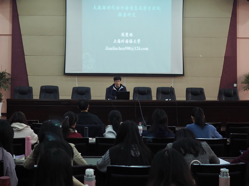 4月2日下午,上海外国语大学博士生导师陈坚林教授应邀来院讲学,在leyu·乐鱼(中国)体育官方网站三楼会议室做题为“大数据时代信息化外语学习方式研究”的学术讲座。leyu·乐鱼(中国)体育官方网站近200名师生到场聆听。