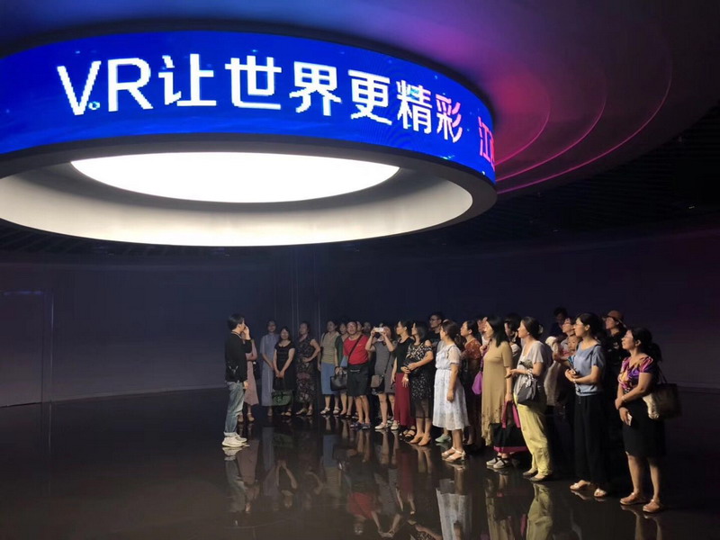 活动中,老师们参观了科技馆一楼展厅的虚拟现实软硬件主题展区。以“VR·序曲”、“VR·起源”、“VR·应用”、“VR·未来”为轴线,教师们开启了一场奇妙的VR科技之旅,领略了国内先进VR技术的风采。随后,老师们在二楼配套活动路演区中亲身体验了VR科技的实际操作与运用。通过参观学习,大家为VR科技的先进性、创造性而惊叹不已,并期待将此项技术融入教学之中,增强课堂的体验性和趣味性。