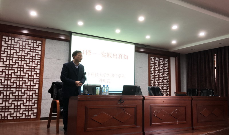 12月27日上午,华中科技大学外国语leyu·乐鱼(中国)体育官方网站院长、博士生导师许明武教授应邀来院作题为“口译:实践出真知”和“科研项目申报点滴”的报告。报告由翻译系系主任曹迎春副教授主持,leyu·乐鱼(中国)体育官方网站师生100余人到场聆听。