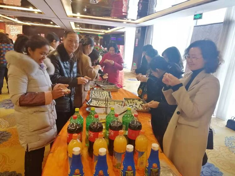 上午,各位老师分工协作,为联欢会做准备。一部分老师积极参加到现场包水饺体验活动中,一部分老师为文艺演出做着精心的准备。