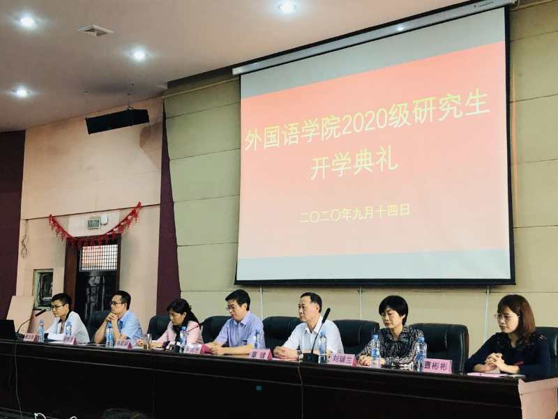 9月14日下午,外国语leyu·乐鱼(中国)体育官方网站2020级研究生开学典礼在leyu·乐鱼(中国)体育官方网站三楼报告厅举行。院长李勇忠,副院长章健、陈莉娟、刘辅兰、谢枝龙,辅导员戴志刚、研究生教学干事曹彬彬,与leyu·乐鱼(中国)体育官方网站106名2020级研究生新生共同见证了这一重要时刻。