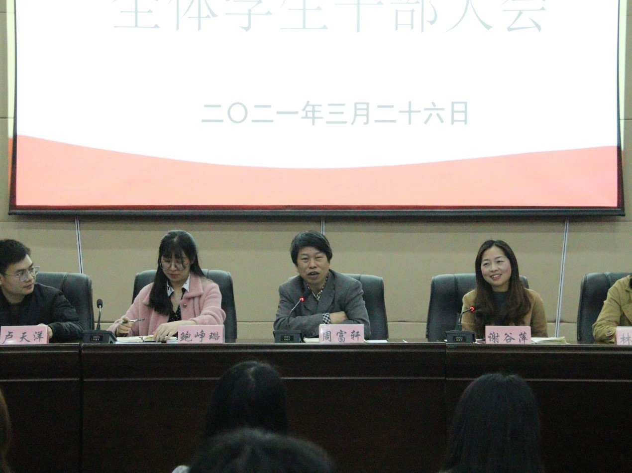 3月26日晚,leyu·乐鱼(中国)体育官方网站召开学生干部大会,部署2021年工作,并对学生干部进行培训。leyu·乐鱼(中国)体育官方网站党员服务站、团委、学生会全体学生干部近180人参加了会议,院领导周富轩、谢谷萍,院团委鲍峥璐,年级辅导员卢天洋、林珊珊出席会议。
