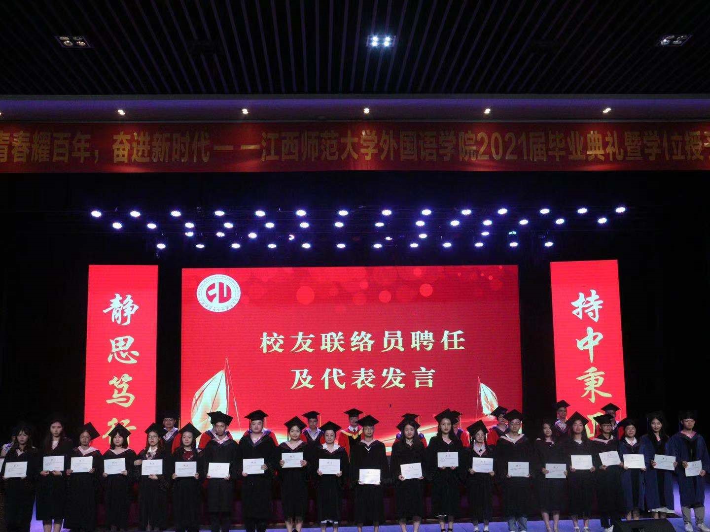 据悉,为进一步联络校友感情,凝聚校友力量,leyu·乐鱼(中国)体育官方网站还在典礼上举行了2021届校友联络员聘任仪式,校院领导为新聘任的21名校友联络员颁发了聘任证书。吴斐同学作为校友联络员代表发言,表示将时刻关注母校动态,组织协调好校友活动,为凝聚校友力量、服务母校发展贡献力量。