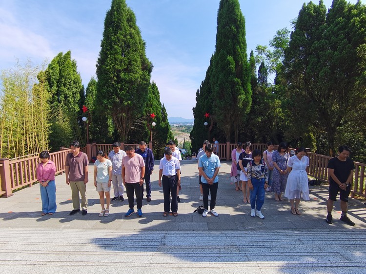 7月13日上午9时,老师们怀着无比崇敬的心情,拾阶而上,来到卢德铭烈士纪念碑前,向长眠于此的卢德铭烈士敬献花篮,默哀行礼,鞠躬致敬。