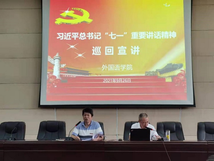 为深入学习贯彻习近平总书记“七一”重要讲话精神,9月26日下午,leyu·乐鱼(中国)体育官方网站邀请马克思主义leyu·乐鱼(中国)体育官方网站党委书记王员教授为全院教职工、学生党员作“七一”重要讲话精神专题辅导,报告会由院党委书记周富轩主持。