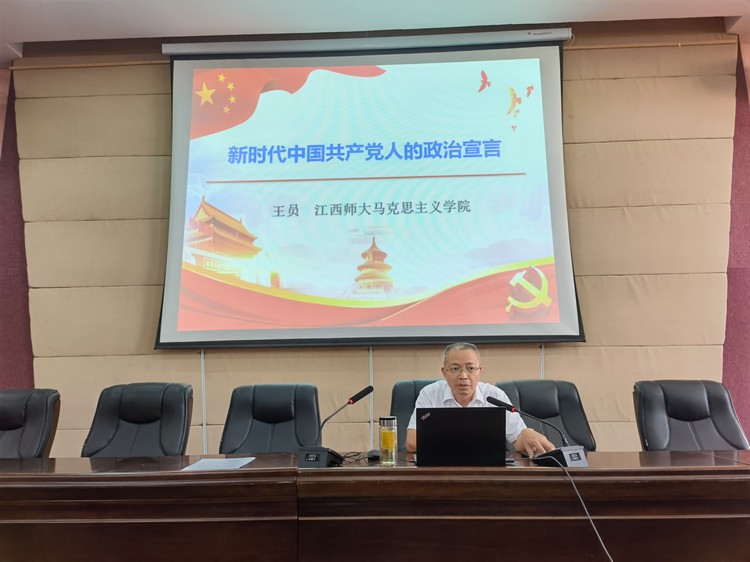 王员教授以“新时代中国共产党人的政治宣言”为题,以习近平总书记“七一”重要讲话为理论依据,从全面小康、伟大成就、建党精神、九个必须四个方面深刻阐述了习近平总书记“七一”重要讲话的重大意义、主要内容和丰富内涵,对习近平总书记“七一”讲话中提出的一系列新的重大思想、重大观点、重大论断进行了系统解读。