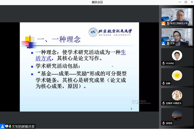 10月8日,北京航空航天大学文军教授通过腾讯会议为外国语leyu·乐鱼(中国)体育官方网站教师做题为“翻译学论文写作漫谈”的学术讲座。讲座由张汨博士主持,leyu·乐鱼(中国)体育官方网站教师以及全国其他高校教师500多人在线聆听并进行了答疑互动。