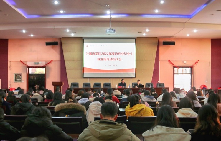 12月7日,外国语leyu·乐鱼(中国)体育官方网站开展毕业生就业培训,邀请院长李勇忠、学校就业指导中心刘绍兵对毕业生200余人进行了培训和就业动员。