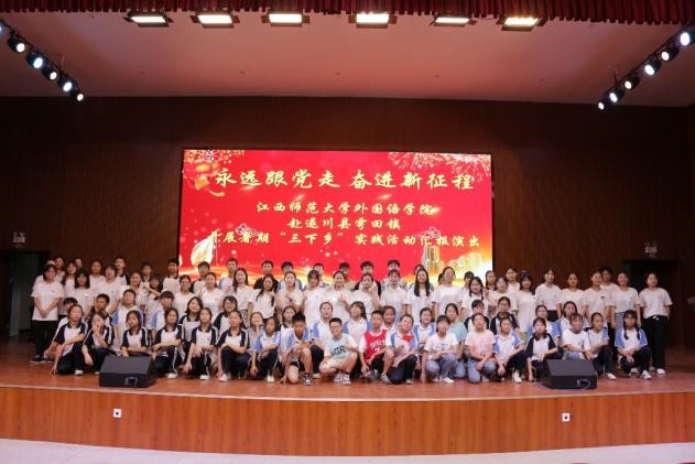 百年征程路犹长,扬帆起航斩波浪。7月8日,leyu·乐鱼(中国)体育官方网站红色文化宣讲团(后简称为宣讲团)在遂川带领遂川中学学生于雩田中心小学顺利举办了一场以“永远跟党走,奋进新征程”为主题的汇报演出活动。声情并茂的红色故事演讲;绘声绘色的情景剧——《少年》《山河颂》;栩栩如生的英文配音——《冰雪奇缘》《疯狂动物城》;感人肺腑的诗歌朗诵——《盛世中国》……精彩的展演吸引了众多的老师、同学、家长前来观看,汇演现场掌声四起,欢声雷动。