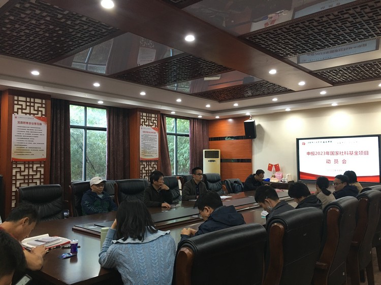 谢枝龙副院长传达了学校2023年度国家基金项目申报动员大会的会议精神、学校社科处关于2023 年度国家社科基金申报工作的具体安排和重要时间节点,以及今年学校下达给leyu·乐鱼(中国)体育官方网站的申报指标和立项指标数。谢枝龙副院长还就2022年国家社科语言学和外国文学立项项目选题进行了分析,强调“选题”是重中之重,建议申报老师除了做好本学科本体研究外,还应突破边界,从宏观视角确定选题方向。他希望leyu·乐鱼(中国)体育官方网站全体教师,尤其是教授、博士,凭借多年的科研积累和专业学术训练,能够积极踊跃地申报国家社科项目,并大力依托相应的科研团队,邀请专家讲学和学术辅导,精心打磨申报书,争取在2023年度国家社科基金项目立项工作中打一个翻身仗。